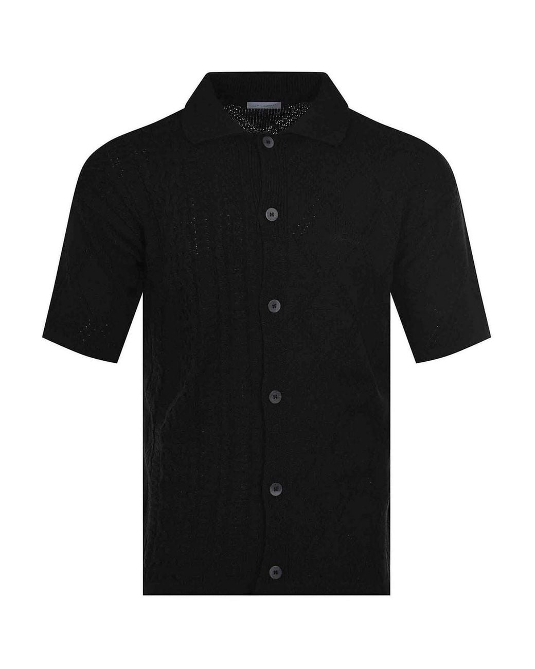 Cassette Waffle-Knit Cotton Polo Shirt - Black
