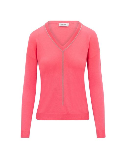 Delicately soft to touch, this lightweight jumper is made for Spring. Intricate hand-stitched silver beading drapes down the neckline, elevating a beautiful basic with elegance. This silver-plated beaded chain will hold true in colour. Model photos are for fit reference, and show our chain jumper in Charcoal grey. 85% Silk, 15% Cashmere. Dry clean only. Colour: pink