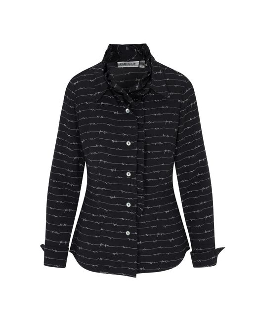 The ruffle is so natural and soft next to your skin. It's sure to get compliments wherever you go. For parties, try with a red skirt. For office, this shirt works well with black trousers. Fabric: 100% Polyester Micro Fibre Microfiber Made in Canada Hand wash cold & line dry or dry clean 100% Polyester Micro Fibre Hand wash cold & line dry or dry clean Colour: black