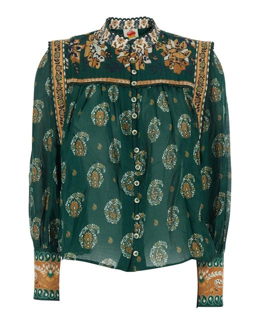 Women's Green 'Ayla' Blouse With All-Over Floral Motif And Buttoned Cuffs
