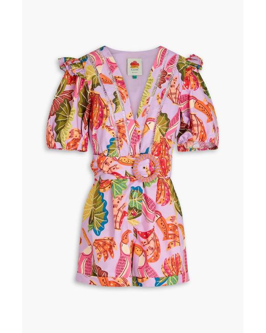 Women's Red Belted Printed Cotton-poplin Playsuit