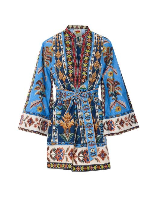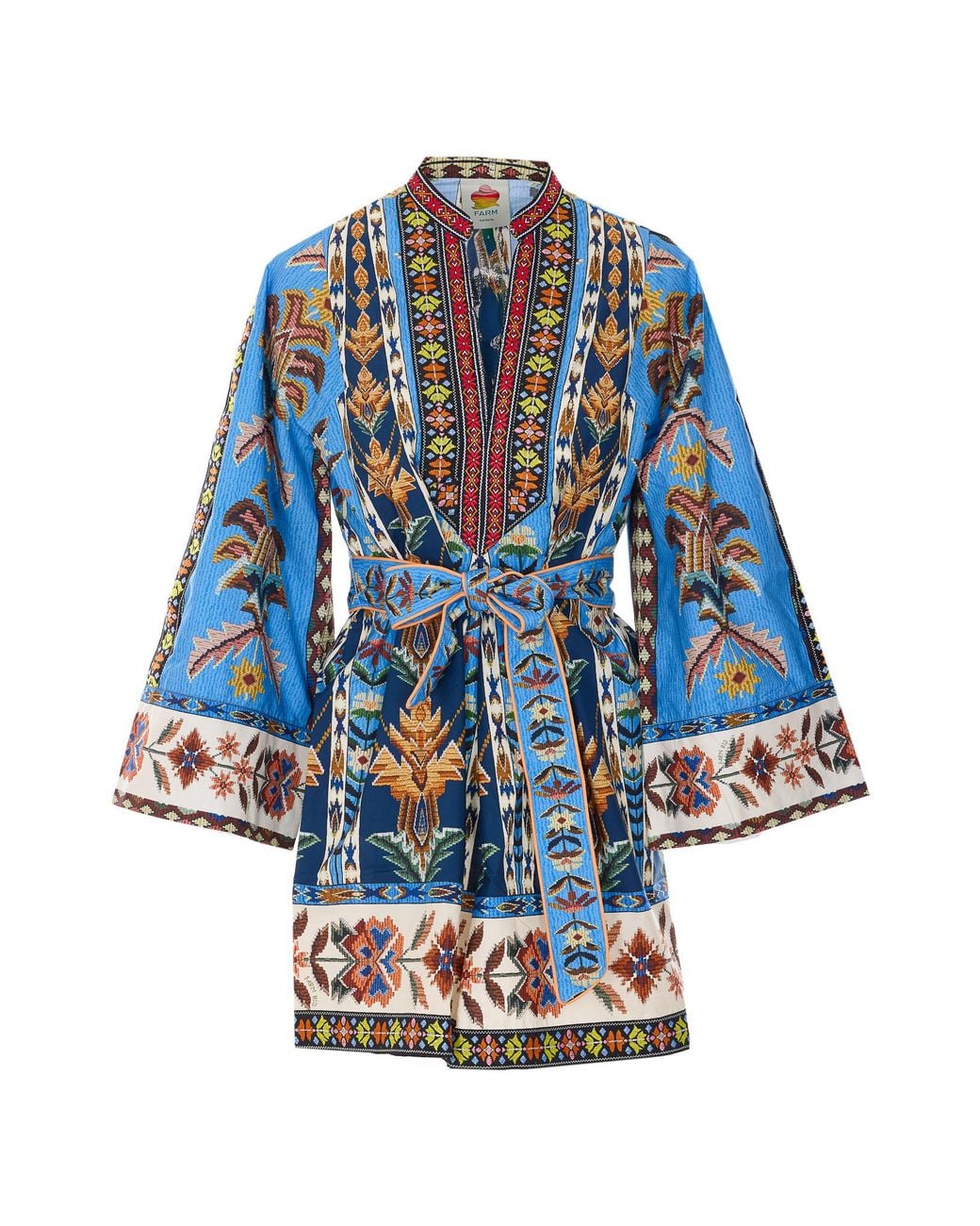 Farm Rio multicolor tapestry dress, mini dress, V-neck, patterned, belt on waistComposition: 100% Cotton