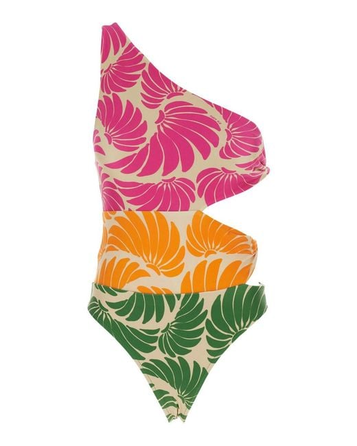 - One-Shoulder One-Piece Swimsuit With All-Over Floral Motif