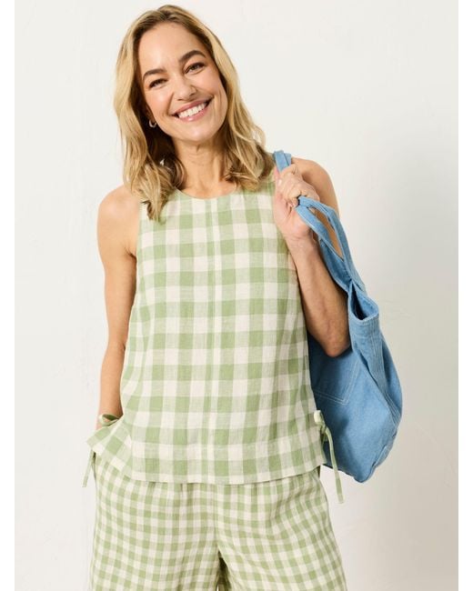 The Darcy blouse features a sleeveless shape with a round neckline, a tie detail at the back, and neat side ties at the hem for a pretty finish. Crafted from soft, airy fabric, it's an easy piece for warm days, layering, or relaxed weekend plans. Machine washable. 55% Linen, 45% LENZING™ ECOVERO™ Viscose. Colour: multicolour