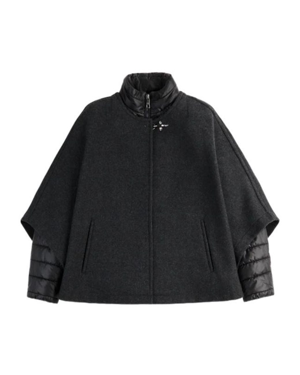 3-In-1 Double-Faced Carded Wool Cape - Black
