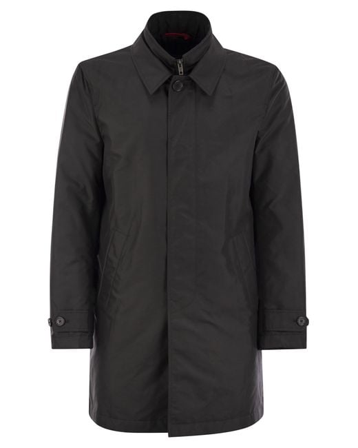 A contemporary interpreter of the logic of day-to-day dressing, the Morning Coat is the iconic mackintosh with a double front construction of casual and versatile elegance. This model, padded with wadding, is made of water-repellent technical poplin. With welt pockets and buttoned sleeve cuffs, it has a zip fastening and concealed buttons that recall the world of British mackintoshes. An inside breast pocket completes the garment. - Made in Italy - Fitting: regular - Waterproof - Bib - Zip fastening DESIGNER ID: NAM62490160AXX B999SpecificationValueYear2024SeasonFALL / WINTERMaterials100% Polyester Lining: 100% Polyamide Filling: 100% PolyesterColorBLACKColor CodeB999Made InItalyGenderMenSize FormatINT