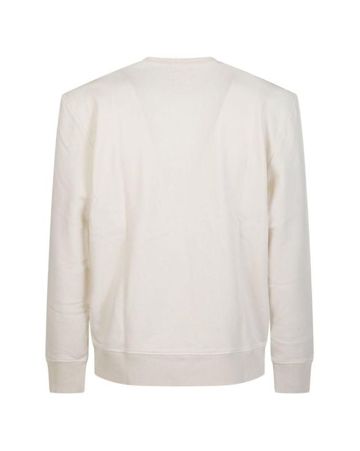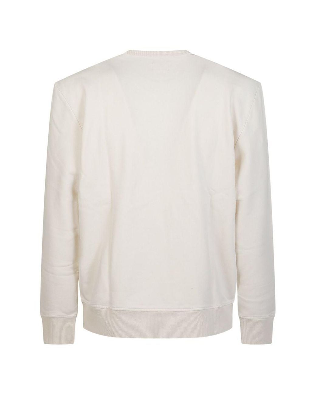 Crew-neck sweatshirt in off-white with long sleeves. Features ribbed-knit cuffs and hem band. Small woven Fay Archive label patch visible at the lower left side seam. Clean, minimalist construction with no visible pockets or external closures. Colour: white