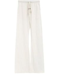Go to AntoniaFear Of God Black Drawstring Trousers. Black wool blend, drawstring waist, panel design, two side pockets, iconic label applied on the front, straight hem with drawstring, drawstrings at the ankles. Aline is 180