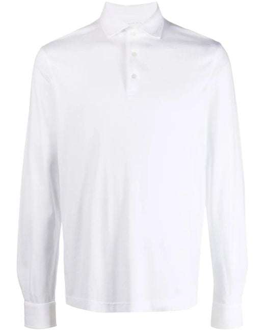 Cloud white organic cotton jersey knit polo collar short front button fastening long sleeves straight hem Size: 50. Gender: Male. Material:Organic Cotton. Colour: white