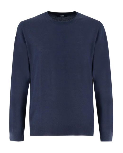 Men's Blue Round-Neck Long-Sleeve Jumper