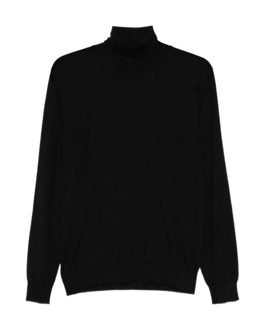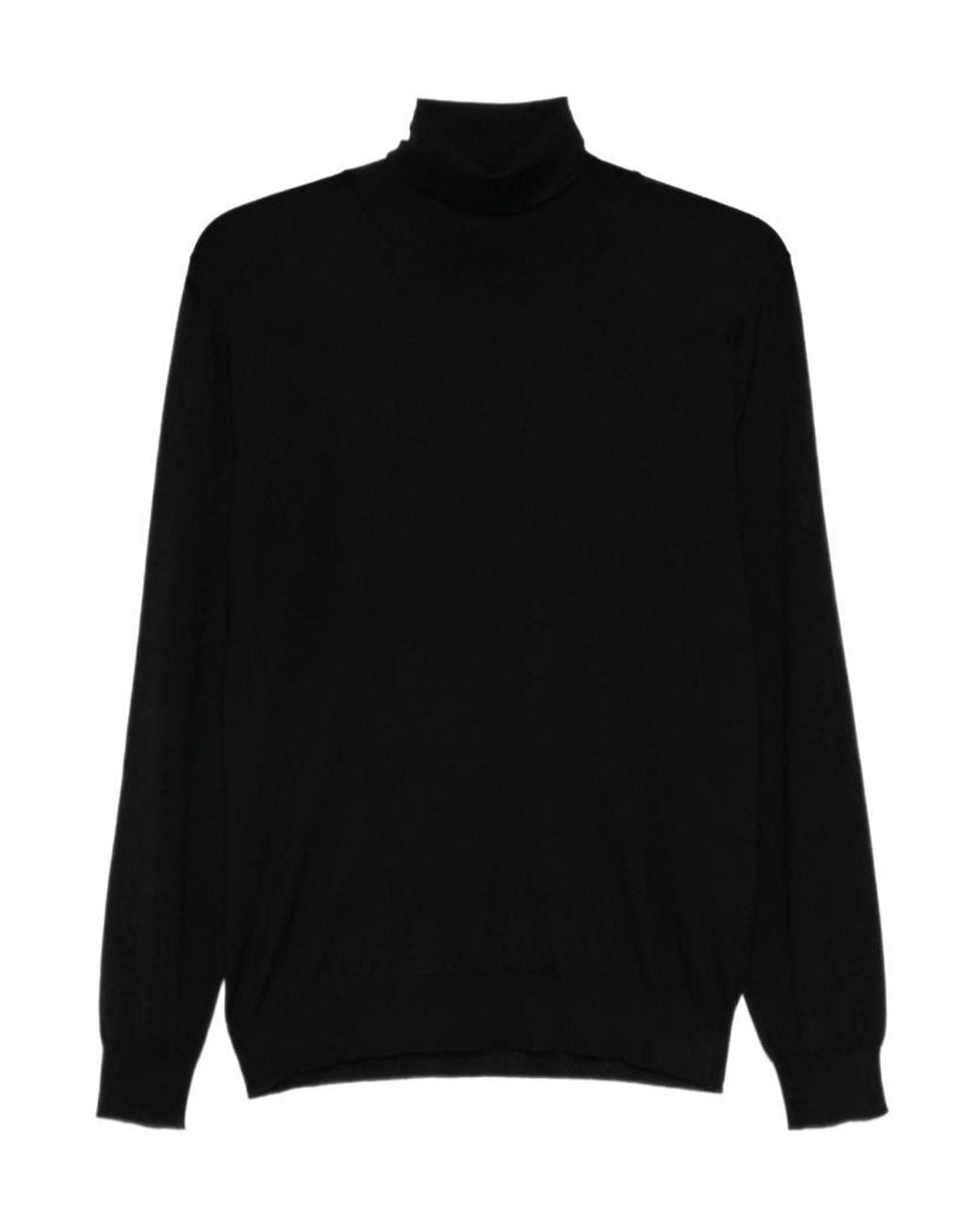 High collar, ribbed trim, long sleeves, straight hem. Colour: black