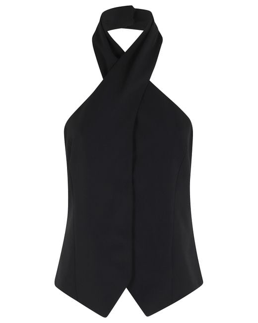 Category Waistcoat Item Cady gilet with crossover Brand Federica Tosi Colour Black Neckline V-neck Details Open back closure Button closure SIZE AND FIT Fit Regular Sleeve length Sleeveless Colour: black