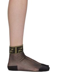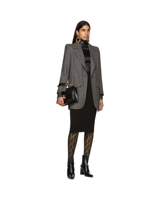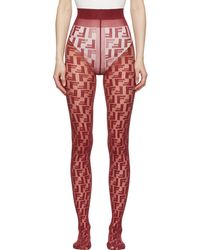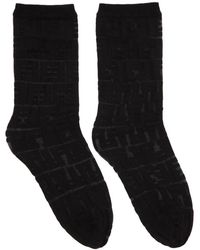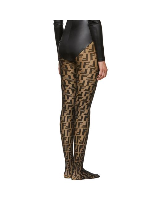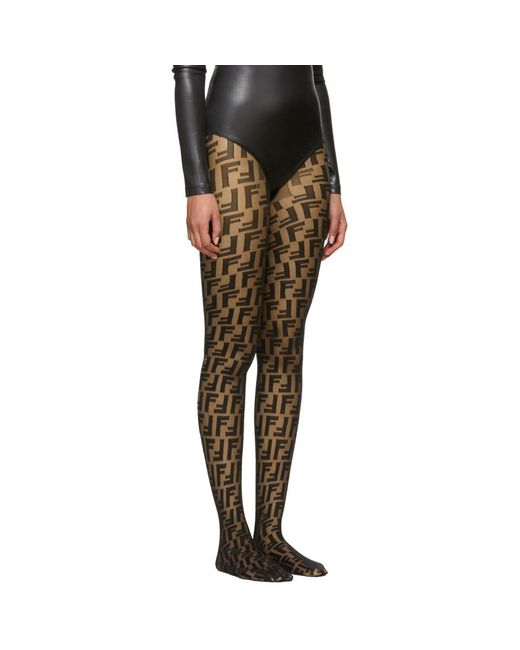 Semi-sheer stretch nylon tights in black featuring opaque tonal logo pattern throughout. Rib knit waistband. Tonal stitching. Colour: black