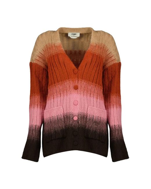 Fendi cardigan from the Autumn‑Winter 2025 collection, crafted in a multicolour mohair and wool knit and defined by an oversized V‑neck silhouette. Key attributes: Multicolour | Rose | Mohair and wool | V-neck | Oversized cut | Dimensions & fit: Oversized fit Colour: pink