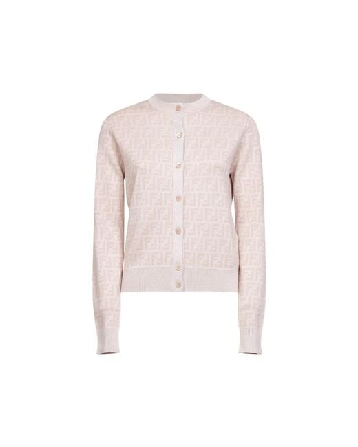 Fendi's FF-jacquard Cardigan is a slim-fit wool cardigan featuring an all-over FF jacquard motif and tone-on-tone mother-of-pearl buttons for a refined finish. Key attributes: Pink | Grapefruit | Wool | Front button placket | Tone-on-tone mother-of-pearl buttons | Ribbed cuffs and bottom band | Ribbed crewneck | Long sleeves | All-over jacquard FF motif | Dimensions & fit: Slim fit | Composition & care: 100% Wool Colour: pink