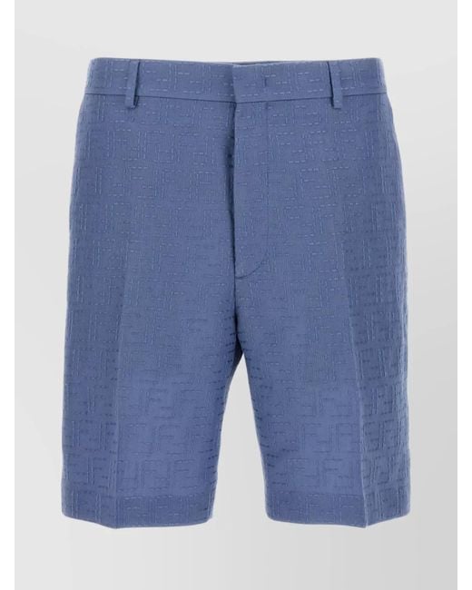 Men's Blue Jacquard Linen Tailored Bermuda Shorts