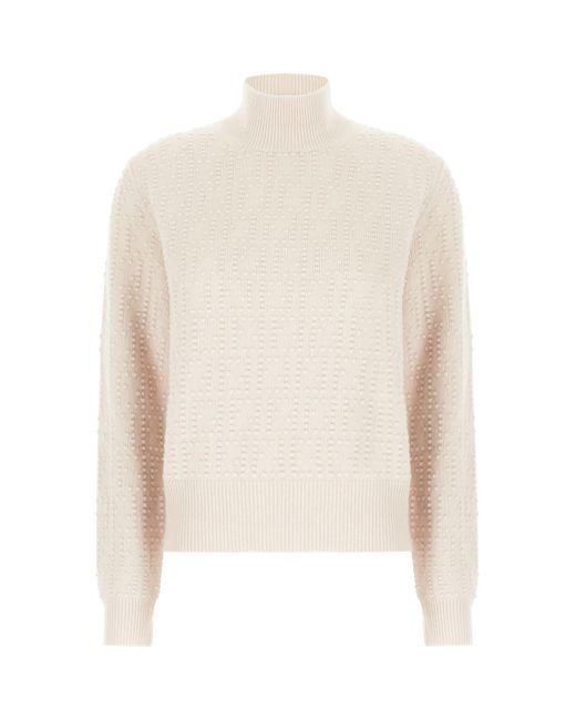 High-Neck Wool And Cashmere Jumper With Ff Polka Dot Embroidery Clothing - White