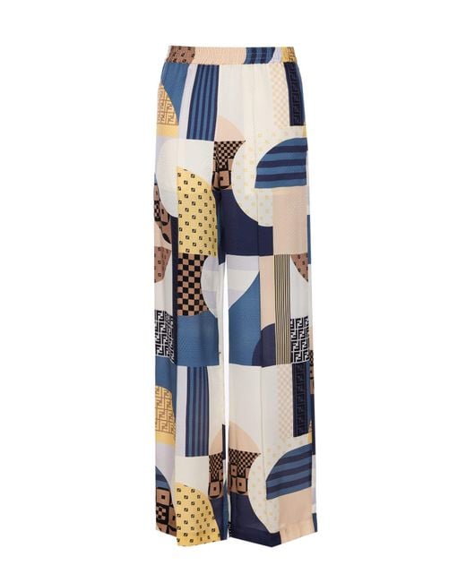 Fendi multicolour patch trousers, elasticized on waist, lateral pockets, flard fitComposition: 100% Silk Colour: blue