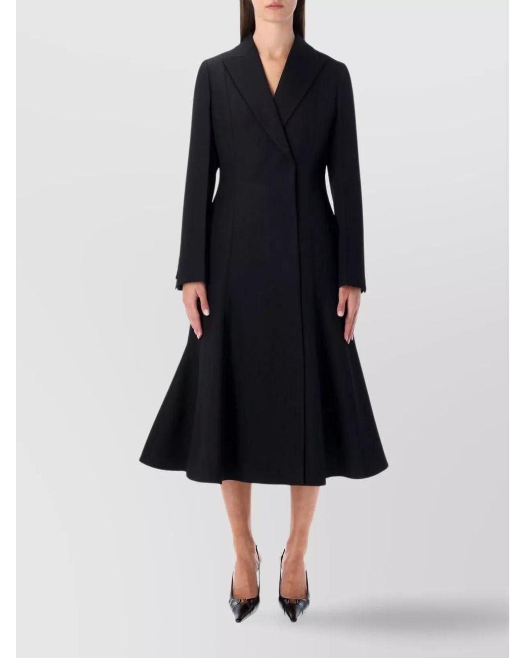 Fitted waist | Midi length | Subtly flared peplum hem | Tailored coat | Black Grain de Poudre wool | Buttoned cuffs | Collar and peak lapels | Side seam pockets | Personalized FF jacquard lining | Concealed hook fastening Colour: blue