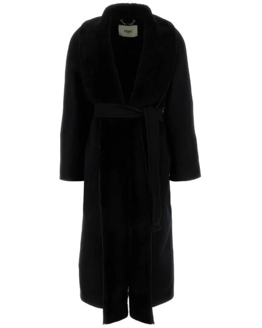 Coat With Ff Buckled Belt On The Front And All-Over L - Brown