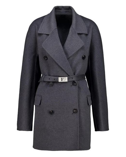 Grey double-breasted belted waist button fastening notched lapels flap pockets Size: 42. Gender: Female. Material:Wool/Virgin Wool. Colour: black