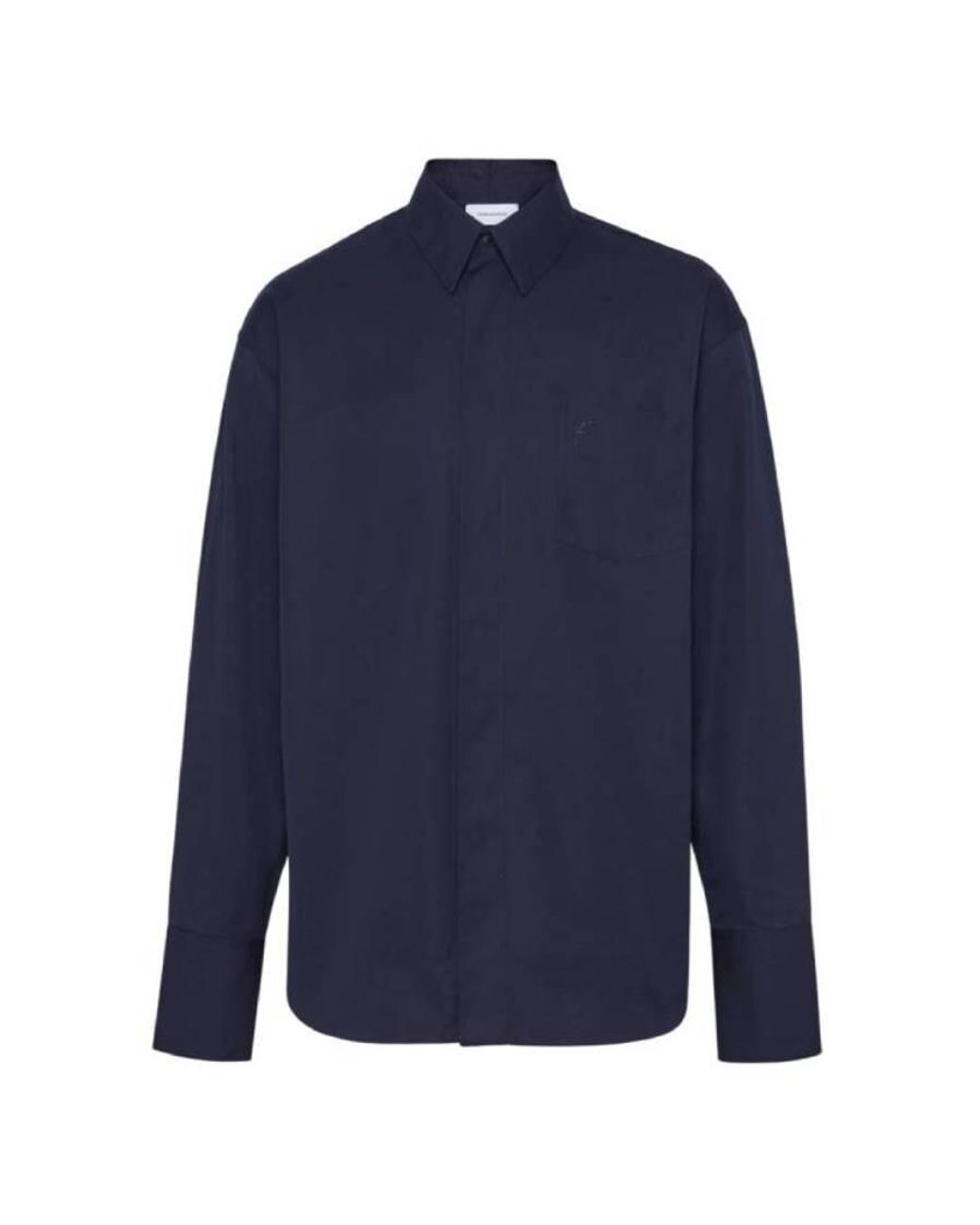 Men's Blue Logo Embroidered Cotton Poplin Shirt