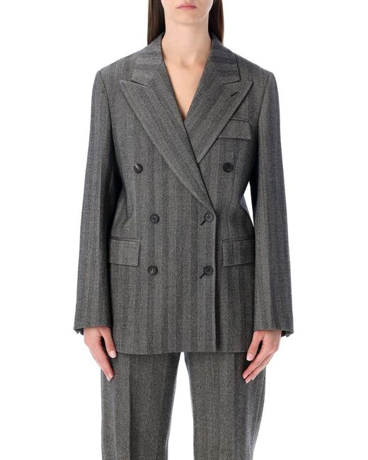 Women's Grey Oversized Double-Breasted Chevron Wool Blazer