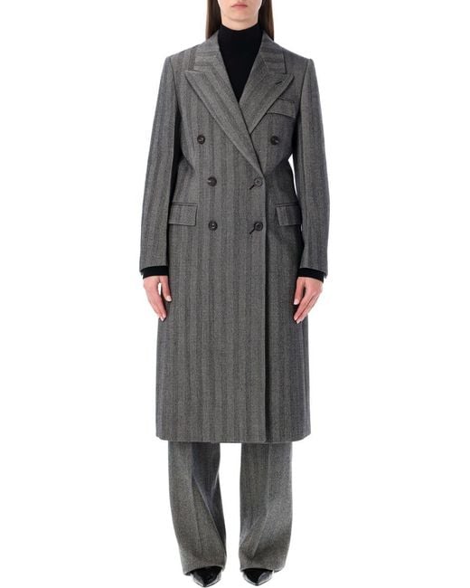 Women's Grey Oversized Double-Breasted Chevron Wool Coat