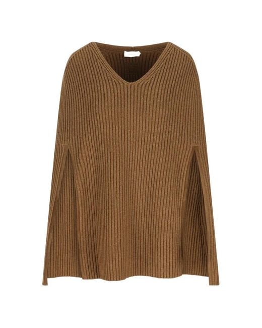 Brown rib knit V-neck side slits tag at the back Size: OS. Gender: Female. Material:Wool/Cashmere. Colour: brown