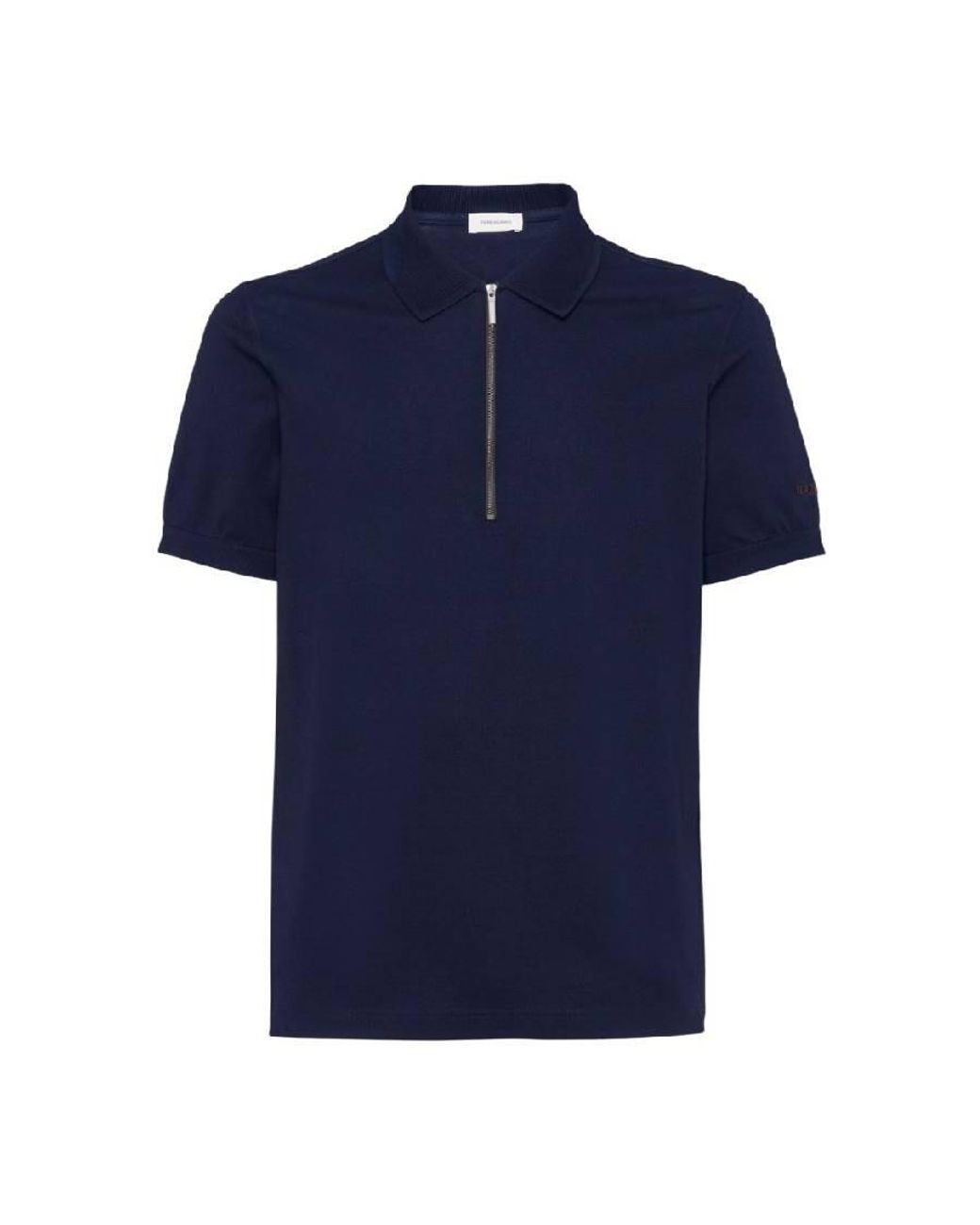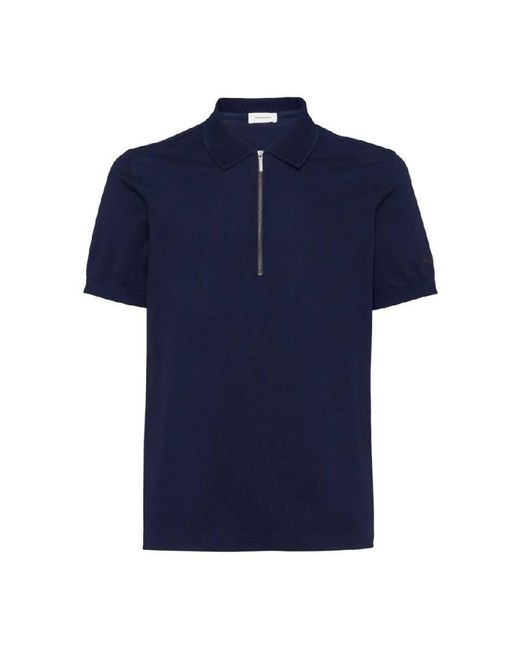Ferragamo Mens Tops. Fashion category: Polo Shirts. SKU: 122327 772042. Color: Blue. Ferragamo Short Sleeve Polo Shirt. This shirt features a zip-up collar, ribbed collar, placket, and cuffs, with an embroidered logo on the left sleeve. 100% Cotton. Made In Italy. Colour: blue