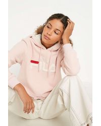 Layer up in this pullover hoodie from athletic label FILA with a plush sherpa construction. Topped with a logo patch accent to the left chest. Includes an adjustable hood and finished with a cropped hem with drawcord. Find it only at Urban Outfitters. Polyester.