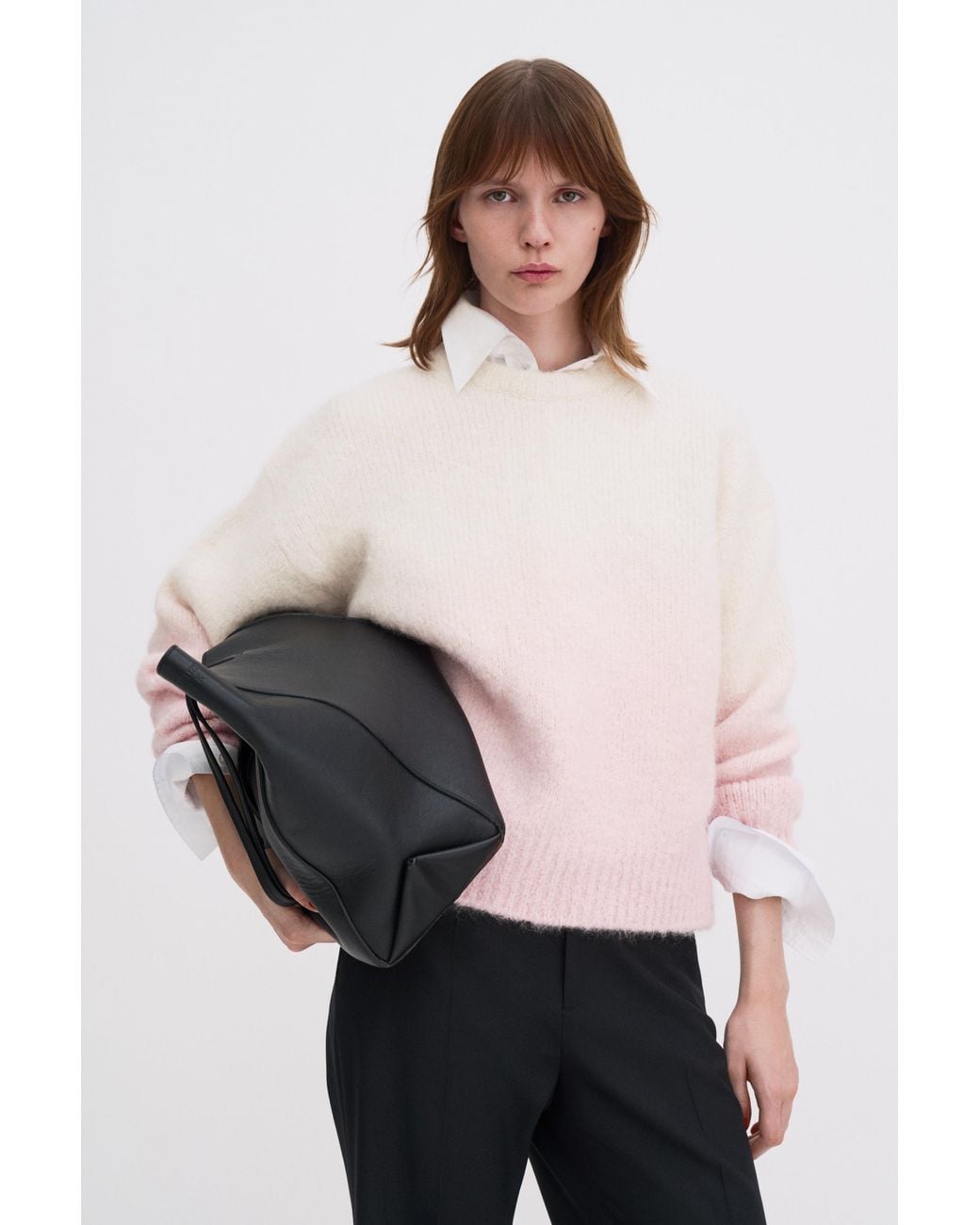 A relaxed jumper, knit from a heavyweight alpaca and merino wool blend. The garment features a custom dip-dye treatment, creating a unique appearance. Wear it through colder months with denim or tailored trousers. Colour: multicolour