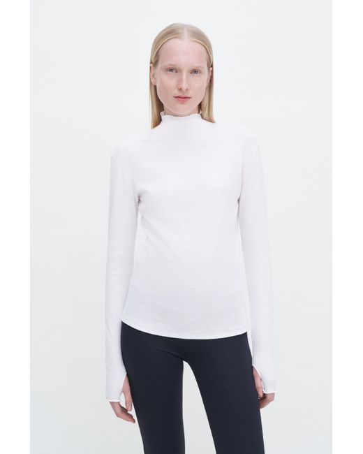 Women's White Rib Mock Neck Top