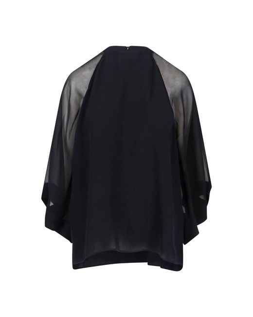 - Black viscose blend shirt Filippa K - crew neck - back zip closure - semi-transparent raglan sleeves