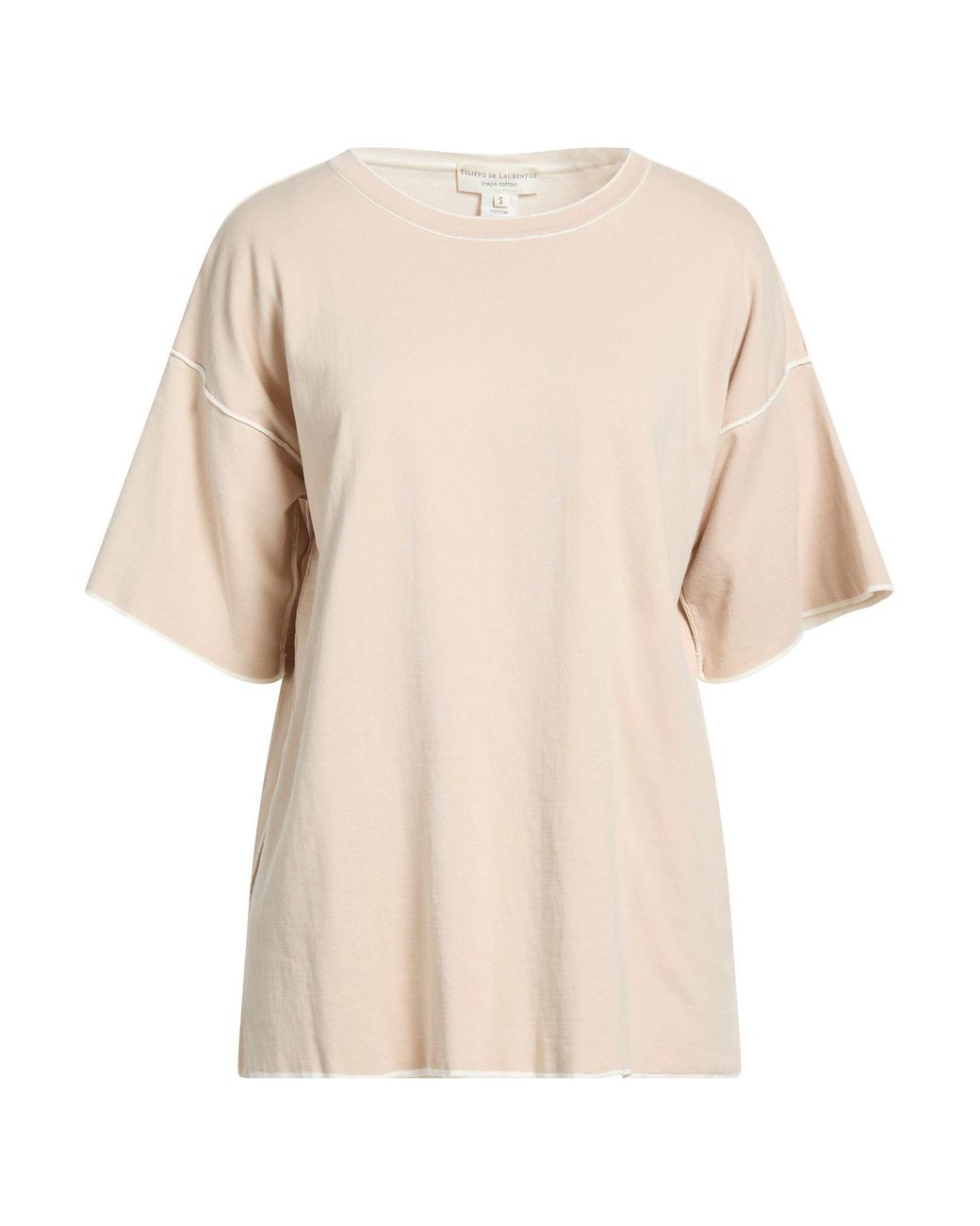 FILIPPO DE LAURENTIIS. jacquard-knit, lightweight knit, piped trims, plain colour with appliqués, crewneck, short sleeves, side slit hemline, hand wash or dry clean, do not bleach, do not tumble dry. 100% Cotton.