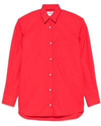 Go to FiorucciEmbroidered Padded Shirt in red, featuring an embroidery across the back. The shirt has a relaxed fit with long cuffed sleeves, a point collar, removable shoulders pads and a button placket. Tie not included. Made in Italy. Colour: white