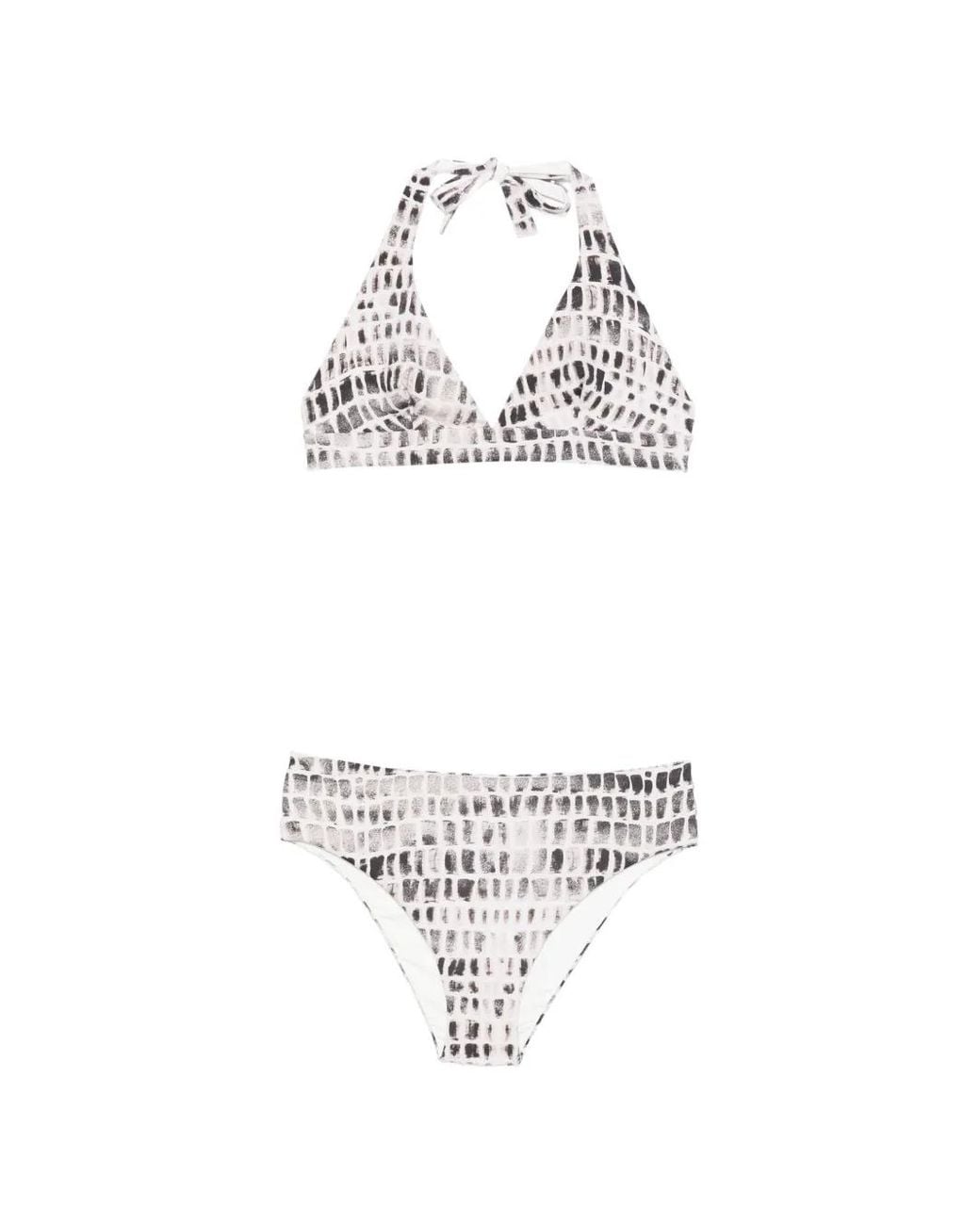 Women's White V-Neck Print Bikini