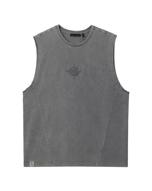 Men's Grey Embroidered Sleeveless T-Shirt