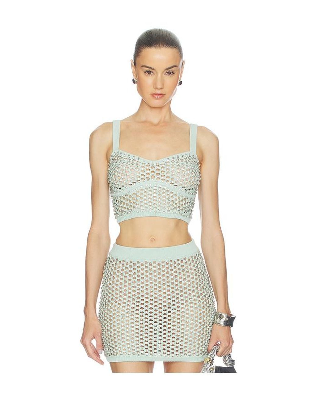 Fleur du mal Spotlight Bralette in Mint. Size M. Also in XS, S. fleur du mal Spotlight Bralette in Mint. Size XS, S. Self: 62% cotton 38% nylon Lining: 90% nylon 10% spandex. Made in China. Spot clean only. Pull-on styling. Midweight rhinestone-embellished crochet fabric. Cropped fit. Garment is intentionally sheer, undergarments will show through.. Please note undergarment not included. FLER-WS198. BR0521. Fleur du Mal inspires dressing up and undressing. Founded in 2012 under the direction of Jennifer Zuccarini, Fleur du Mal is a luxury ready-to-wear, lingerie and swim brand based in New York. The Fleur du Mal woman is chic, playful and a little mischievous - a duality that draws from the infamous collection of poems by Charles Baudelaire, Les Fleurs du Mal.