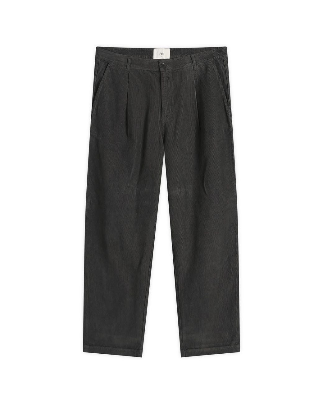 Elevate your style with the Folk wide fit trouser, bringing a refined touch to everyday style. Cut from an Italian cotton and linen blend with a corduroy texture, it blends comfort with smart, tailored design. Featuring front pleats, slant pockets and piped side seams, it gives a clean, structured look. 80% Cotton, 20% Linen, Zip Fly, Front & Back Pockets, Front Pleat, Product Code: FM6414W-SGC, Folk, Shop All Men's Wide Leg Trousers, - Folk Men's Wide Fit Trouser Smoke Grey Cord Colour: grey