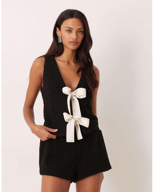 Women's Black Boucle Bow Front Singlet