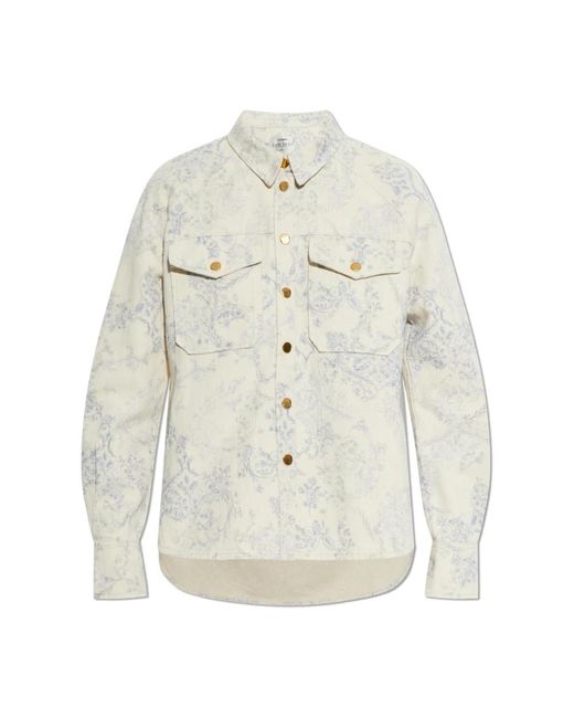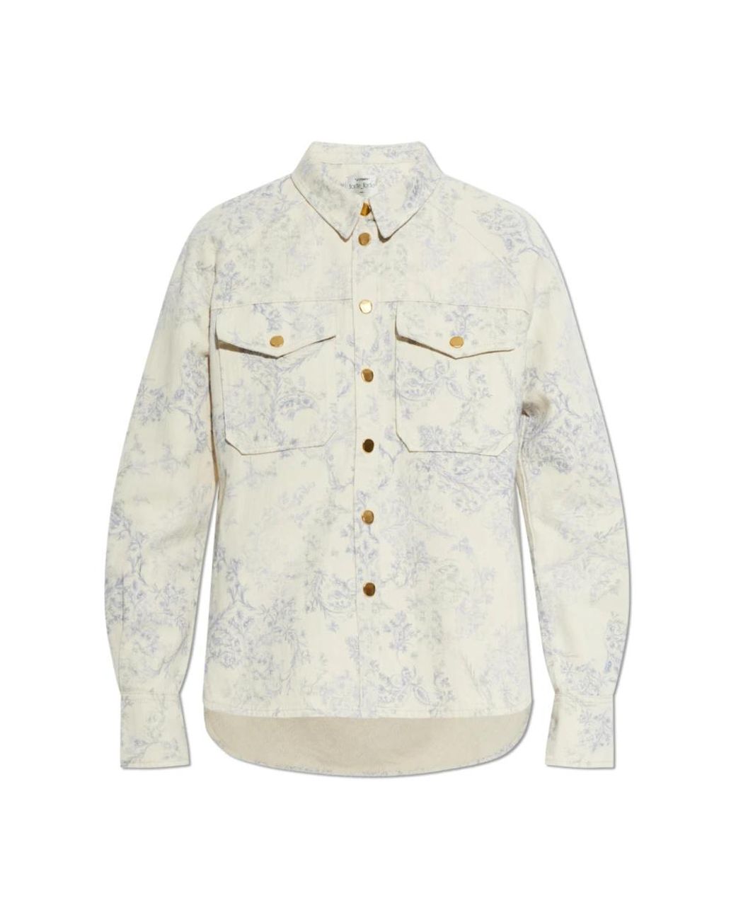 Forte Forte Patterned Shirt combines a creamy cotton-linen fabric with a cool blue botanical watercolour motif for an elegant, wearable statement. Its slightly oversized cut and gold-button details make it suitable for both relaxed daytime looks and refined layered outfits. Key attributes: Beige | Cream | Cotton and linen | Front flap pockets with matte gold buttons | Buttoned cuffs | Botanical watercolour pattern in cool blue | Rounded hem | Monochromatic placket | Gold buttons as jewelry-inspired detail | Two large front flap pockets | Dimensions & fit: Model height: 177cm | Bust: 83cm | Waist: 61cm | Hips: 89cm | Model is wearing size: I | Slightly oversized fit | Composition & care: Cotton | Linen Colour: white