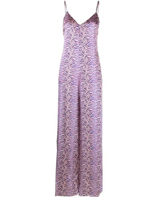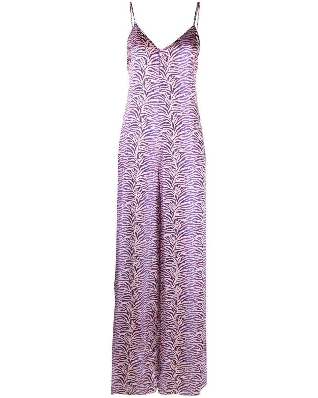 Women's Purple Zebra-Print Satin Jumpsuit