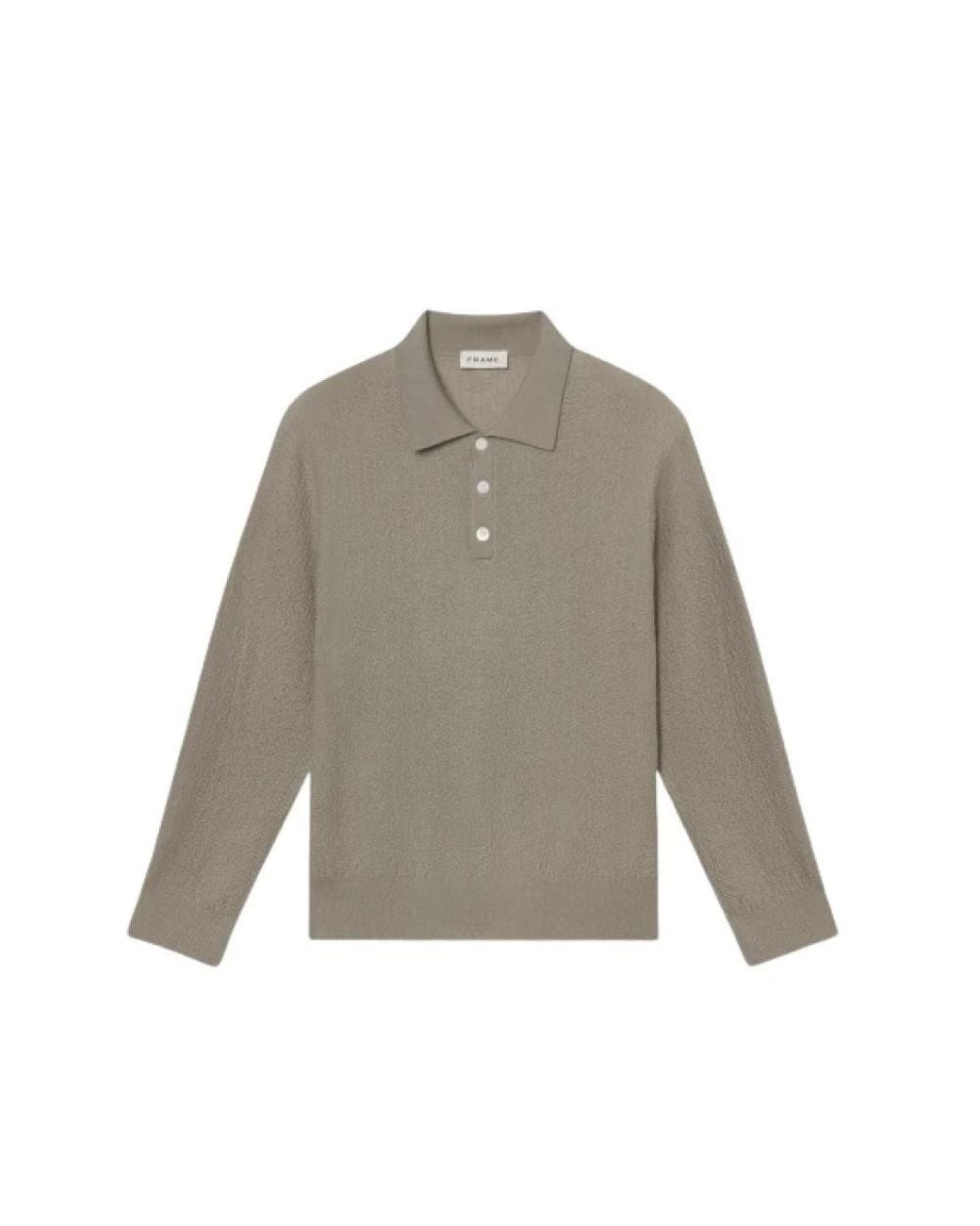 Frame Long Sleeve Polo Jumper pairs a classic polo neckline with a clean, timeless silhouette in a wool knit, ideal for cool-weather layering and smart-casual outfits. Key attributes: Grey | Warm grey | Wool | Breathable knit | Functional button closure | Classic polo neckline | Long sleeves | Ribbed cuffs and hem | Timeless silhouette | Dimensions & fit: Length: 24.75 in / 63 cm (size M) | Sleeve: 33 in / 84 cm (size M) | Chest: 41.75 in / 106 cm (size M) | True to size | Composition & care: 100% wool | Dry clean. Colour: grey