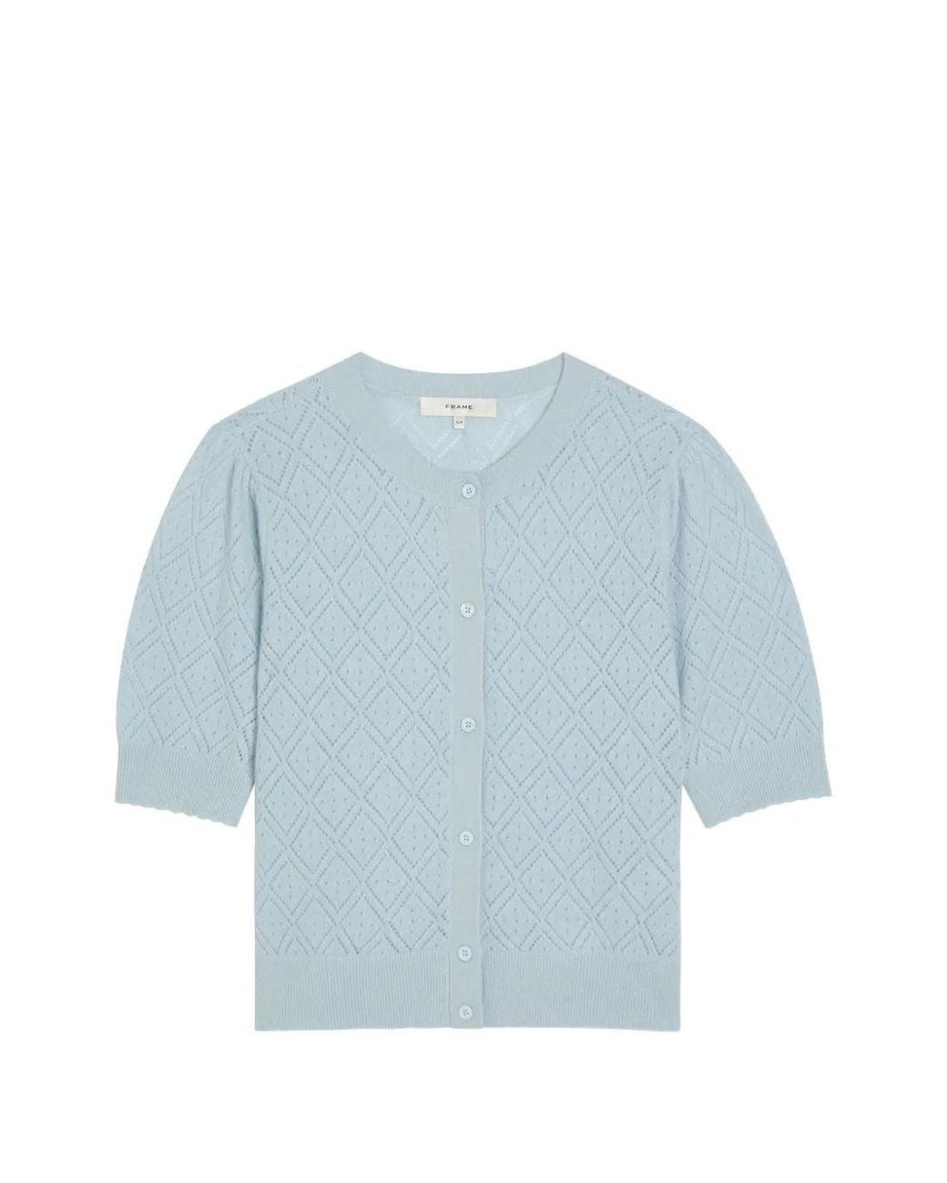 Blue diamond pattern round neck button fastening short sleeves Size: XS. Gender: Female. Material:Cashmere. Colour: blue