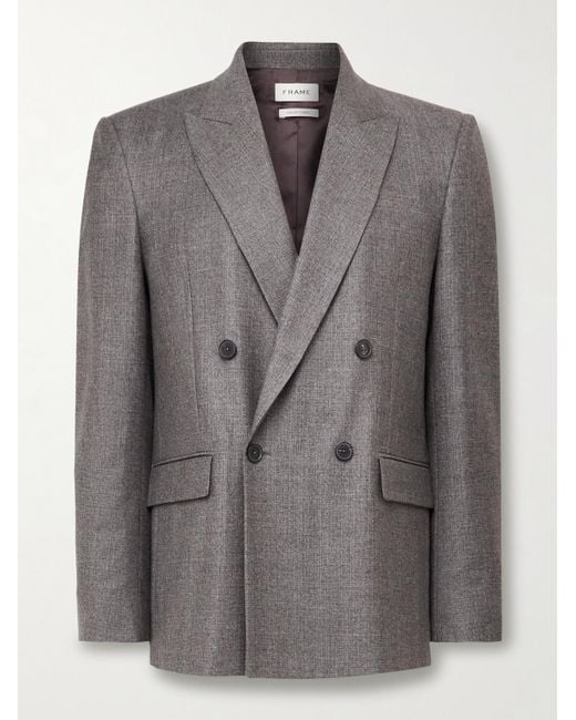 Men's Grey Double-Breasted Virgin Wool-Flannel Suit Jacket