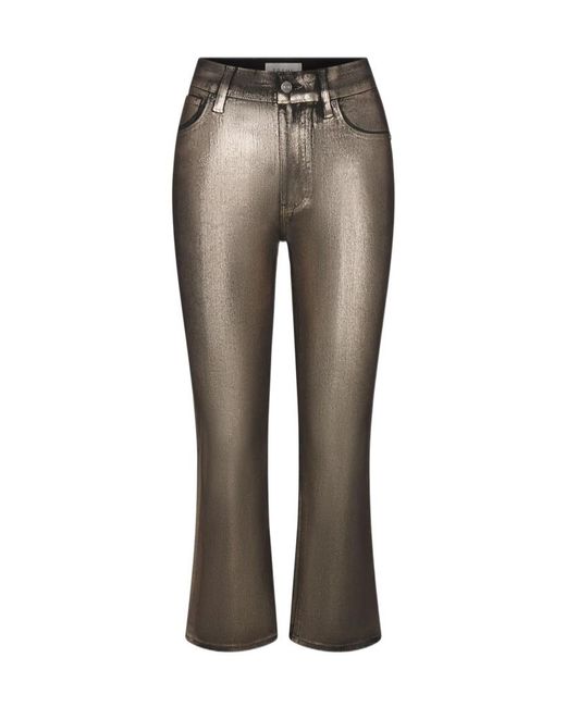 Metallic finish, belt loops, front zip and button closure, five classic pockets. Colour: grey