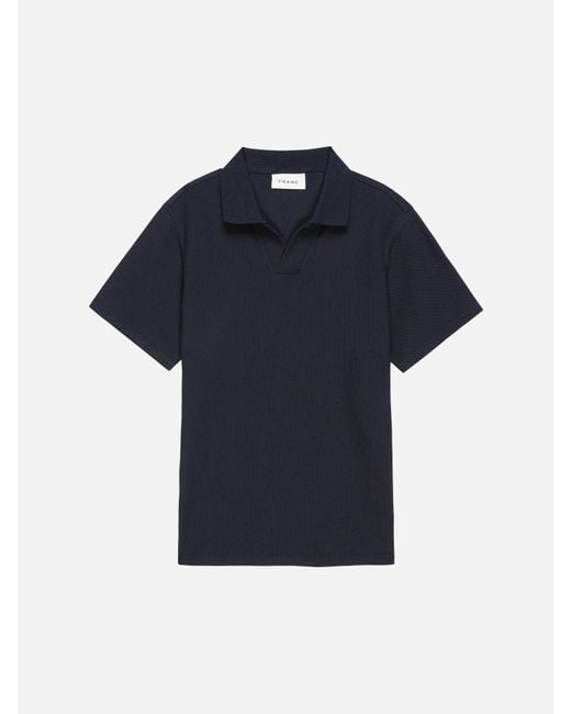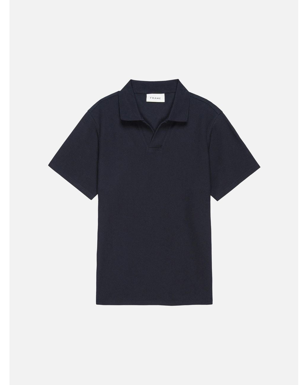 A modern update to the classic wardrobe staple, this short-sleeve polo features an open V-neck collar sans buttons. The premium textured cotton fabrication lends a luxurious look and feel. Fit it into your 9-5 rotation as well as your off-duty weekend routine. Colour: blue