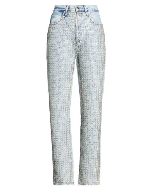 FRAME. straight-leg jeans, denim, faded, plain colour with appliqués, crystals, light wash, high waisted, regular fit, zip fastening, button fastenings, five pockets, do not wash. 100% Recycled cotton.