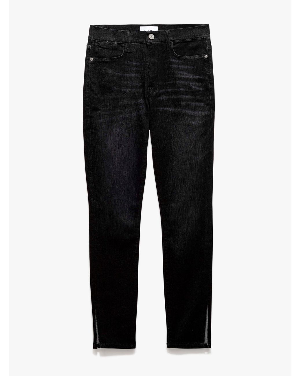 Our Bestselling skinny jean, done in sculpting, super stretch Le Shape fabric for a perfect fit that contours your curves and won't bag out with wear. This pair is crafted from black denim, and features a high-rise waist and a full-length skinny leg with a Y2K-inspired slit at the outer seam. Colour: black